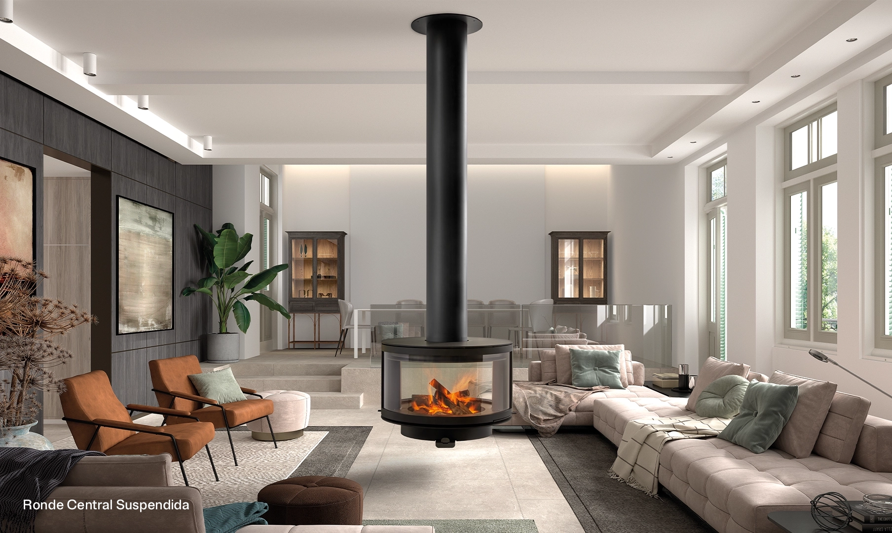 Contemplare il fuoco da qualsiasi punto della stanza è un vero piacere. La Ronde Central crea un ambiente confortevole per quelle serate invernali in compagnia della famiglia o degli amici accanto al fuoco.