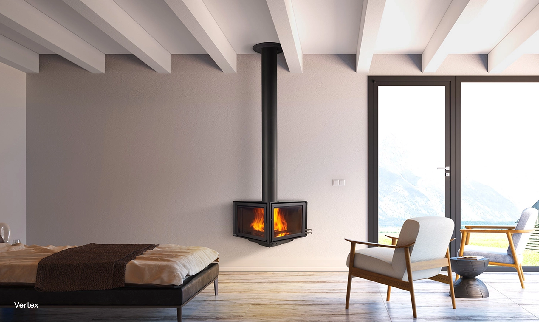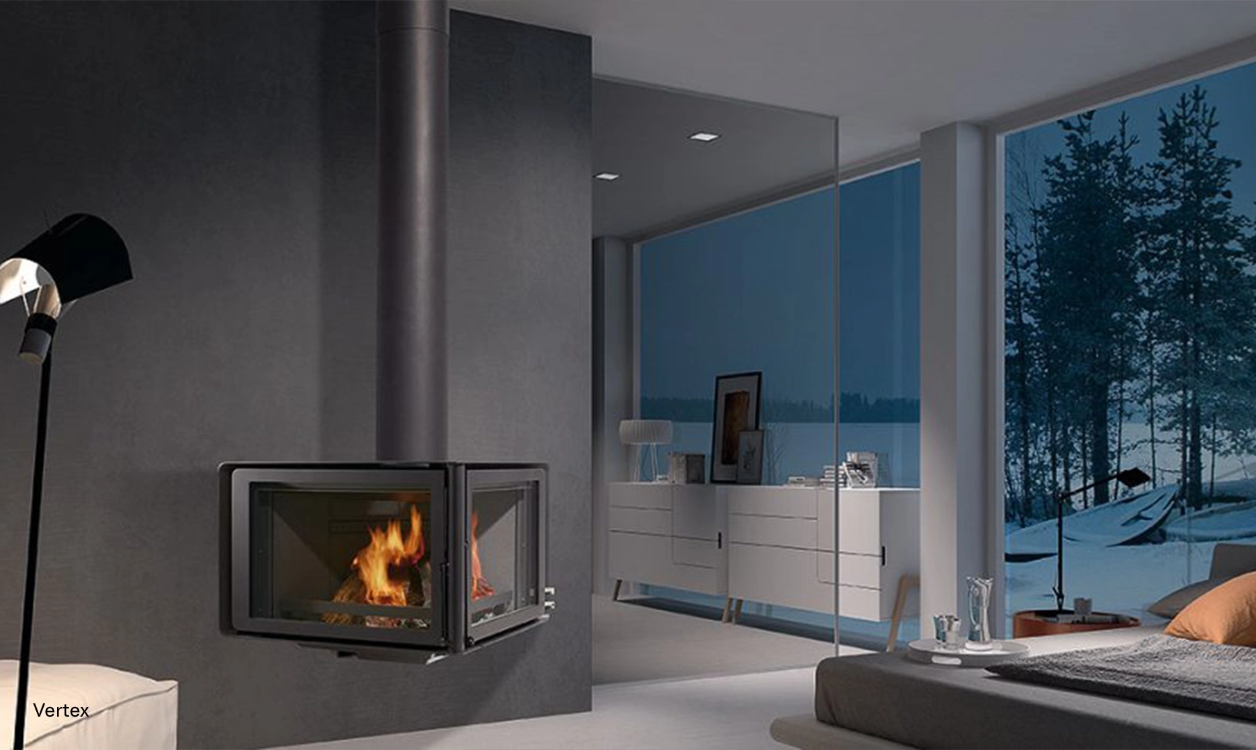 Vertex incarna una raffinata eleganza architettonica. Un vero gioiello che, grazie alle sue dimensioni compatte, si inserisce con stile in qualsiasi angolo. Ogni dettaglio del suo design elegante eleva l'atmosfera della stanza, permettendo alla magia del fuoco di riempire la vostra casa.