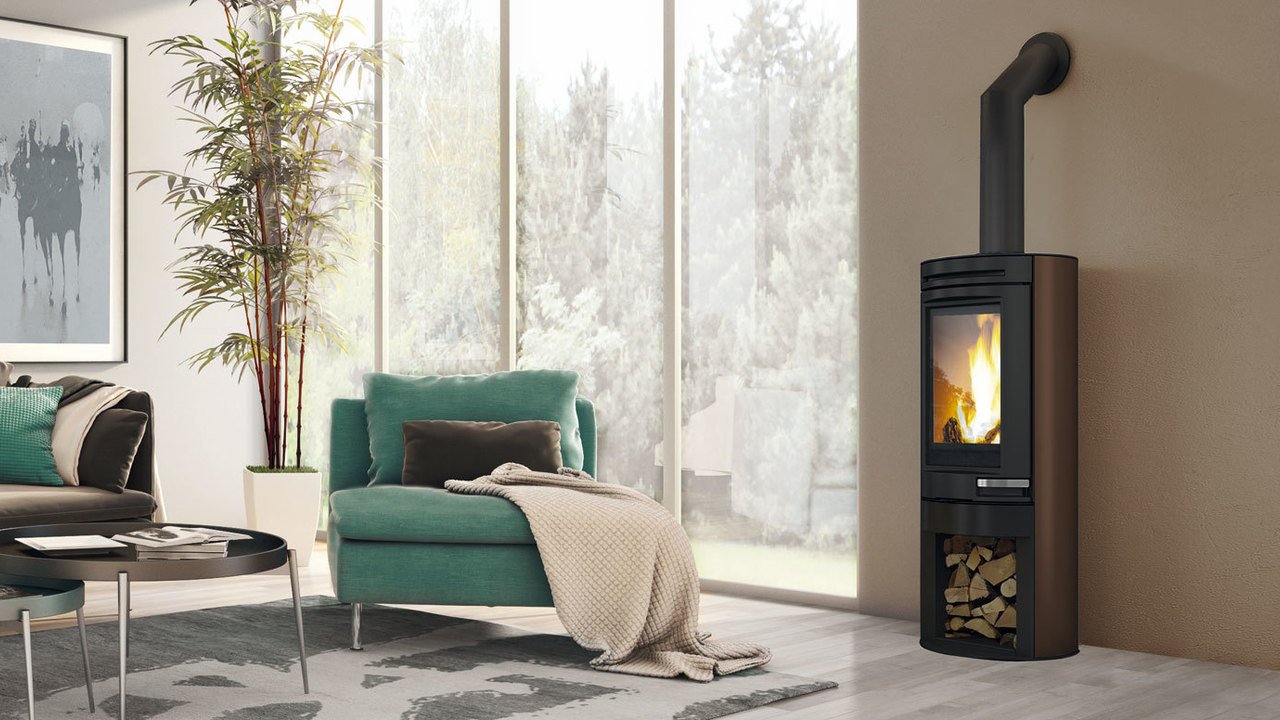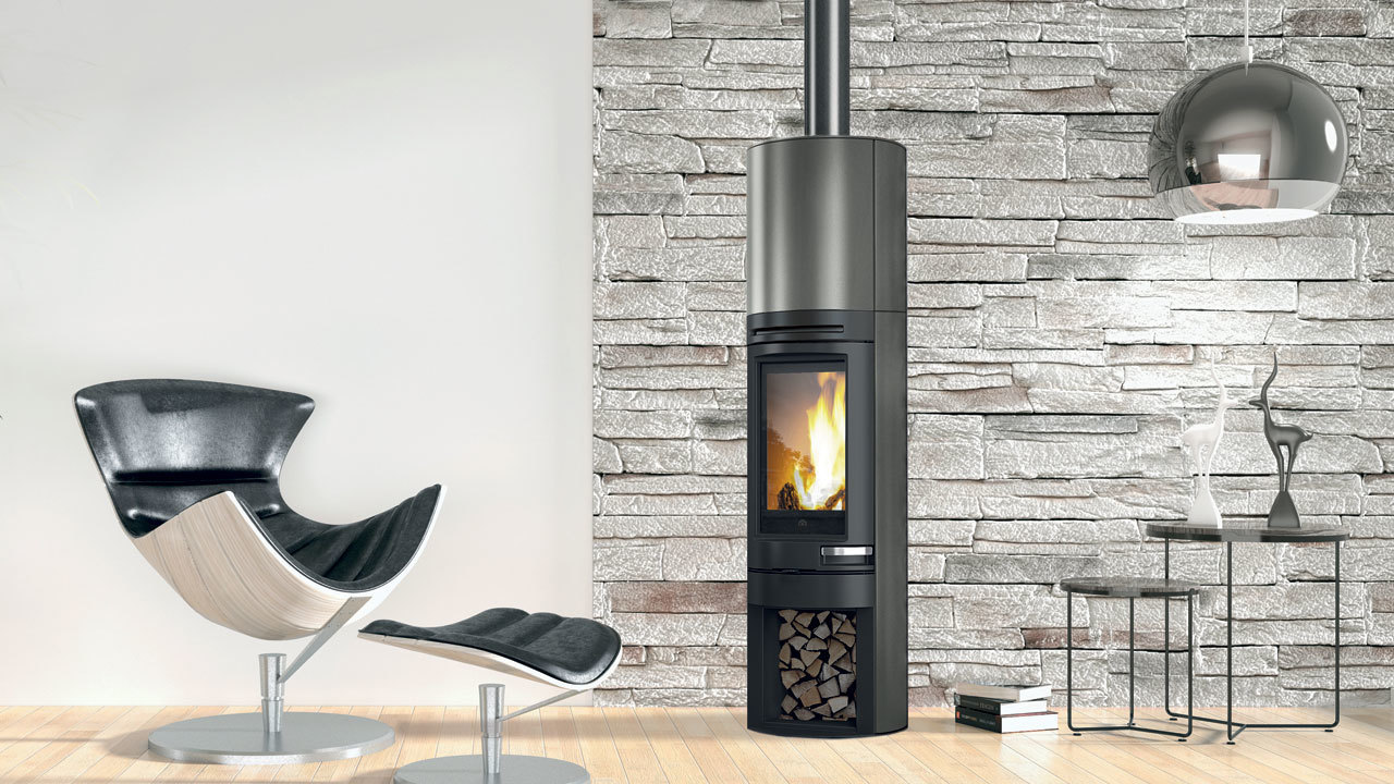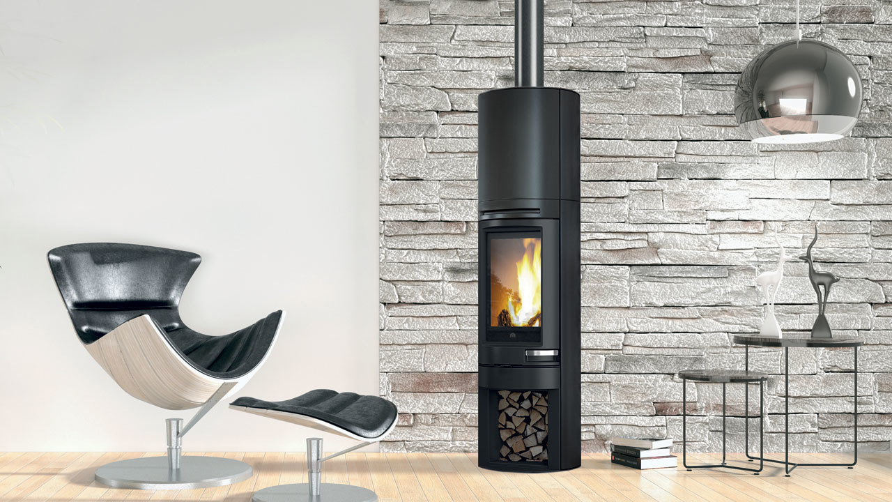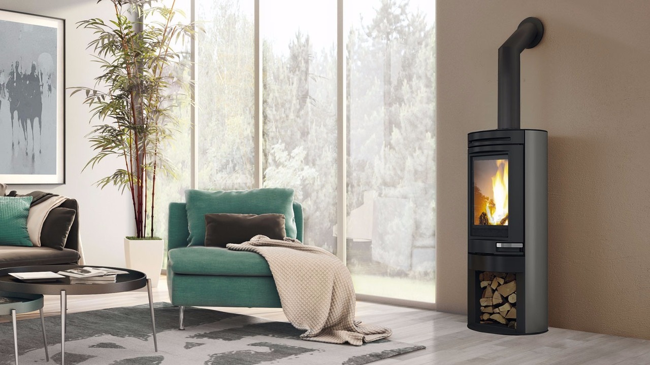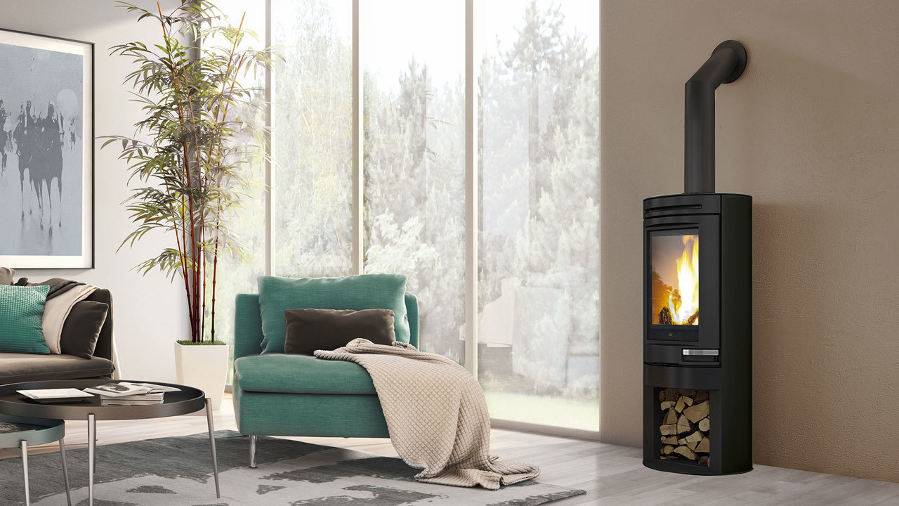 Stufa a legna Tally Evo2, con ampio vetro piano verticale che esalta il naturale andamento della fiamma. Tally Evo2 è predisposta per accumulo con kit optional: il top con anelli refrattari consente di accumulare calore e rilasciarlo in maniera prolungata anche nelle ore successive all’ultima carica di legna.