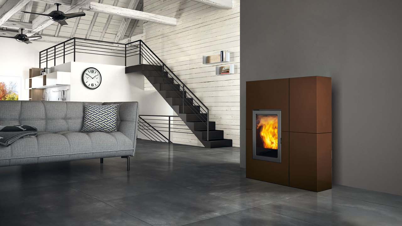 Stufa a pellet canalizzabile con profondità ridotta (cm 34,5).