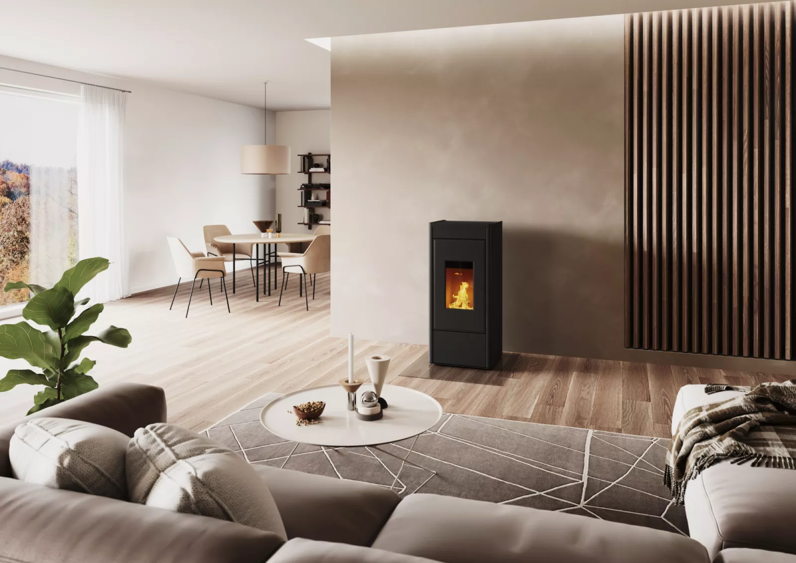 PRIMO è sinonimo di un'accattivante sobrietà, senza compromessi in termini di qualità e funzionalità. Il suo design lineare e il rivestimento in acciaio nero le conferiscono un aspetto industriale senza tempo. Colpisce per la sua intuitiva facilità d'uso e per l'alimentazione dell'aria controllata in modo completamente automatico, che garantisce la massima efficienza e basse emissioni. Disponibile in due dimensioni, la stufa a pellet PRIMO mostra le sue capacità: La versione da 6 KW è pensata per gli spazi abitativi più piccoli e, quella con una potenza termica di 8 KW, PRIMO riscalda con facilità anche gli ambienti più grandi. Anche la capacità del serbatoio del pellet e l'altezza della stufa variano a seconda della potenza termica. Come modello MULTIAIR, PRIMO è in grado di riscaldare in modo accogliente anche altre due stanze adiacenti.