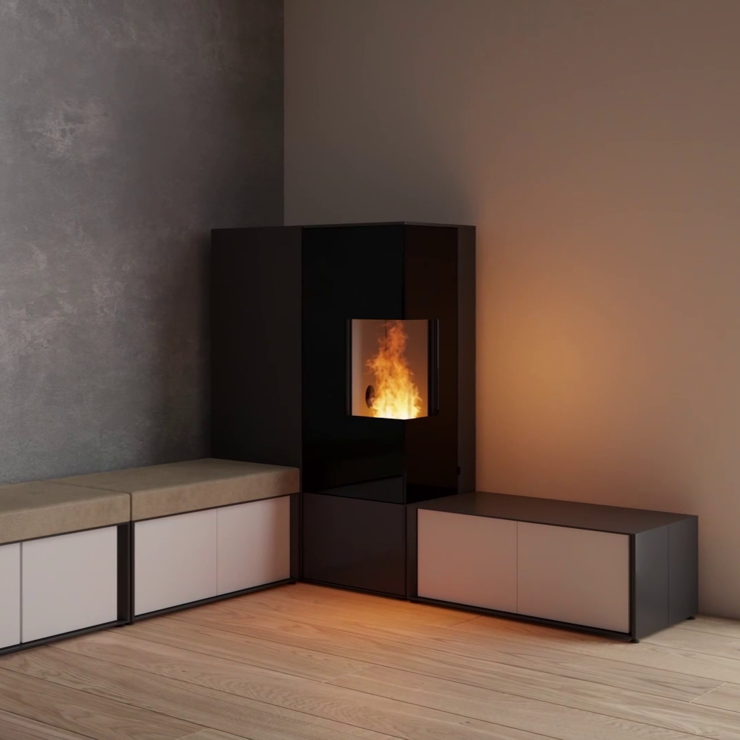 CONNECT PELLET EDGE con vista ad angolo accentua la diversità del sistema CONNECT ed è una specialità assoluta tra le stufe a pellet modulari. La vista ad angolo - a scelta a sinistra o a destra - non apre solo una vista eccezionalmente generosa sul fuoco, ma anche dimensioni completamente nuove dell'arredamento. A parete, come divisorio o come soluzione angolare: con un po' di creatività, CONNECT PELLET EDGE con vista ad angolo, compresi i componenti aggiuntivi e gli accessori variabili, può essere personalizzata con stile e praticità allo stesso tempo.
