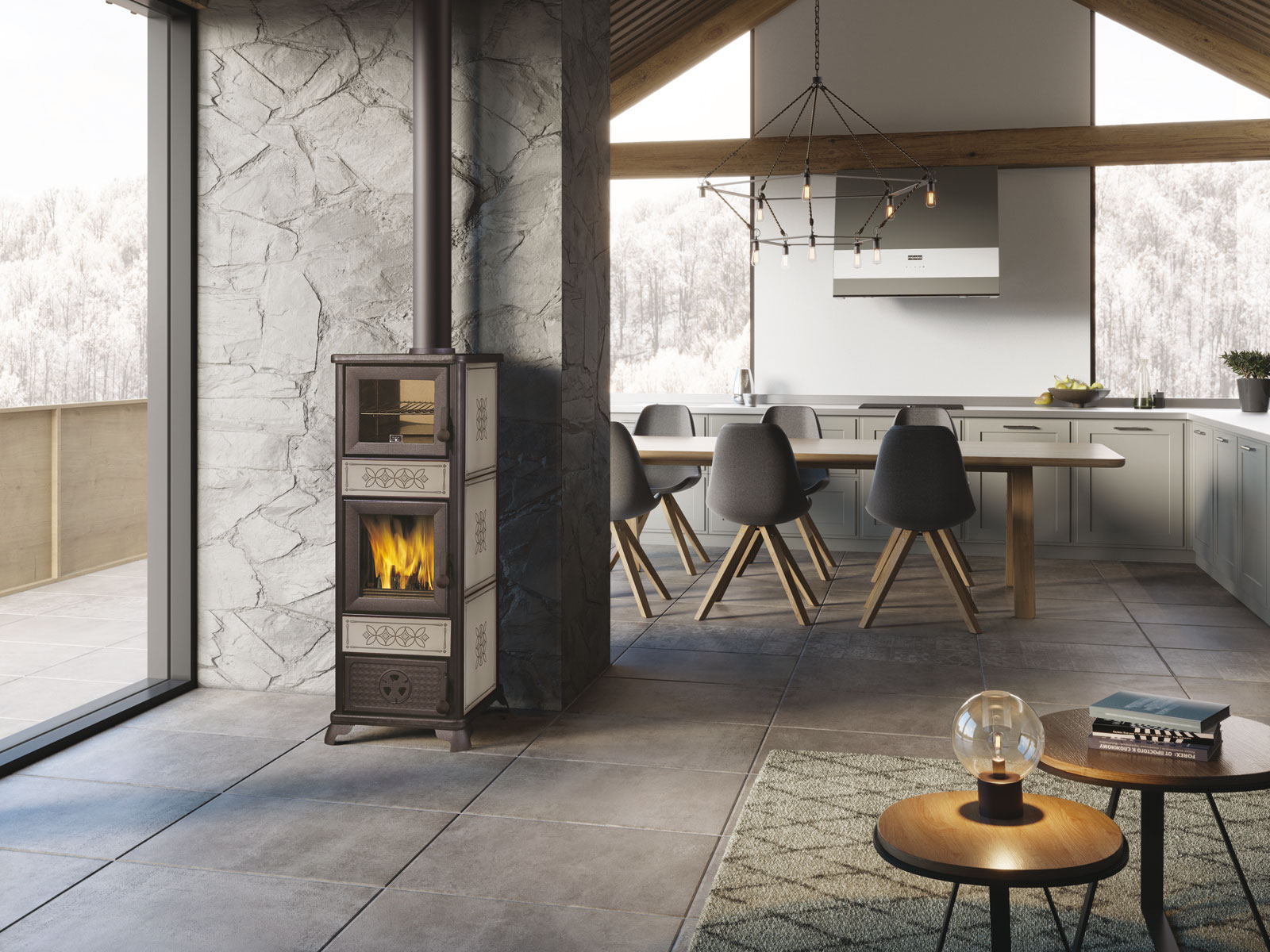 Il frontale e il top sono in ghisa smaltata con pratici anelli asportabili per riscaldare le pietanze.