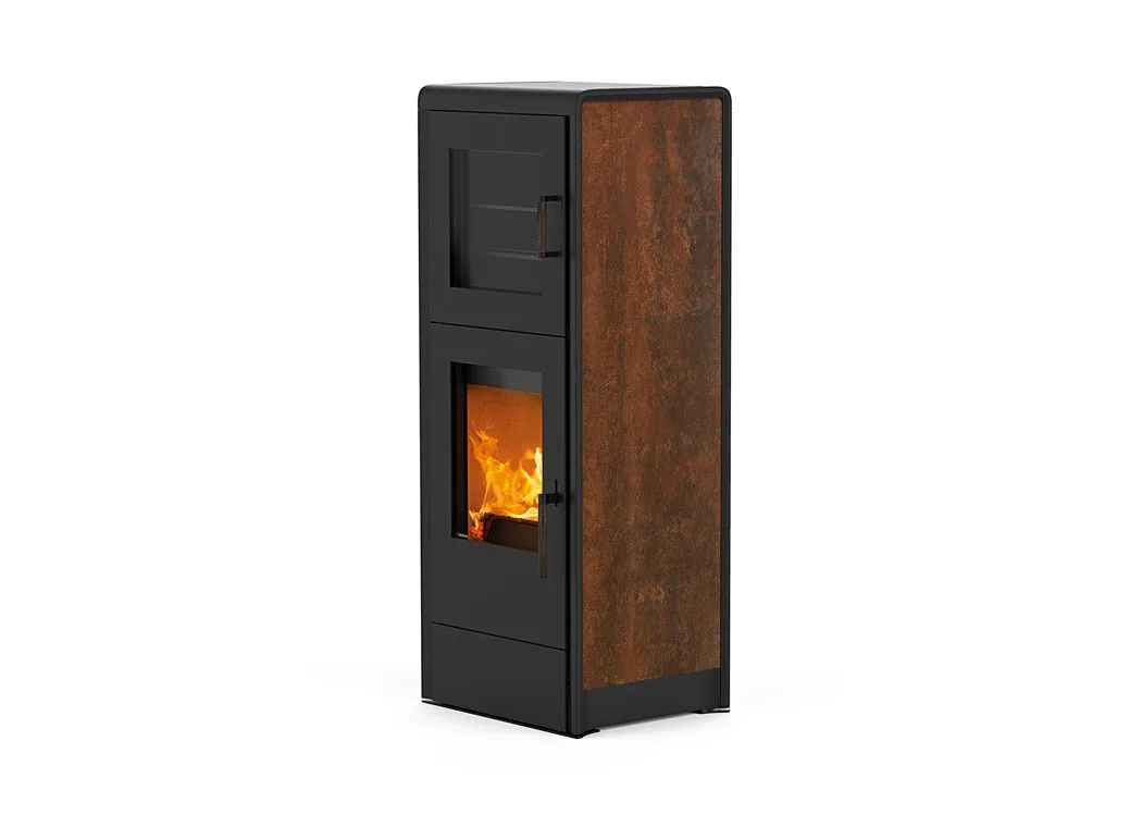 Una casseruola che ottiene la sua crosta dorata nel forno. BACK rende piacevole non solo il riscaldamento, ma anche la cottura.La stufa RIKA BACK è dotata di un vano cottura integrato e consente di utilizzare il calore supplementare per preparare piatti deliziosi o per cuocere al forno. A differenza di molti altri produttori, RIKA utilizza un vano cottura smaltato anziché verniciato. Grazie alla superficie smaltata di alta qualità, la teglia non solo è eccezionalmente resistente, ma anche particolarmente igienica. Anche ad alte temperature, lo smalto rimane assolutamente innocuo, mentre le superfici verniciate possono trasferire agli alimenti sostanze potenzialmente nocive. La teglia smaltata è anche facile da pulire e da mantenere pulita. L'area di visualizzazione aggiuntiva consente di tenere sempre sotto controllo le proprie creazioni. Il corpo in acciaio può essere personalizzato con diversi pannelli laterali decorativi per adattarsi al vostro spazio abitativo. La stufa indipendente dall'aria ambiente è disponibile in una gamma di potenza da 4,0 a 8,0 kW ed è dotata del sistema di controllo dell'aria RIKA (RLS). Questo sistema consente di controllare e ottimizzare l'alimentazione e la distribuzione dell'aria nella stufa con un semplice comando a una mano.Dati tecnici: