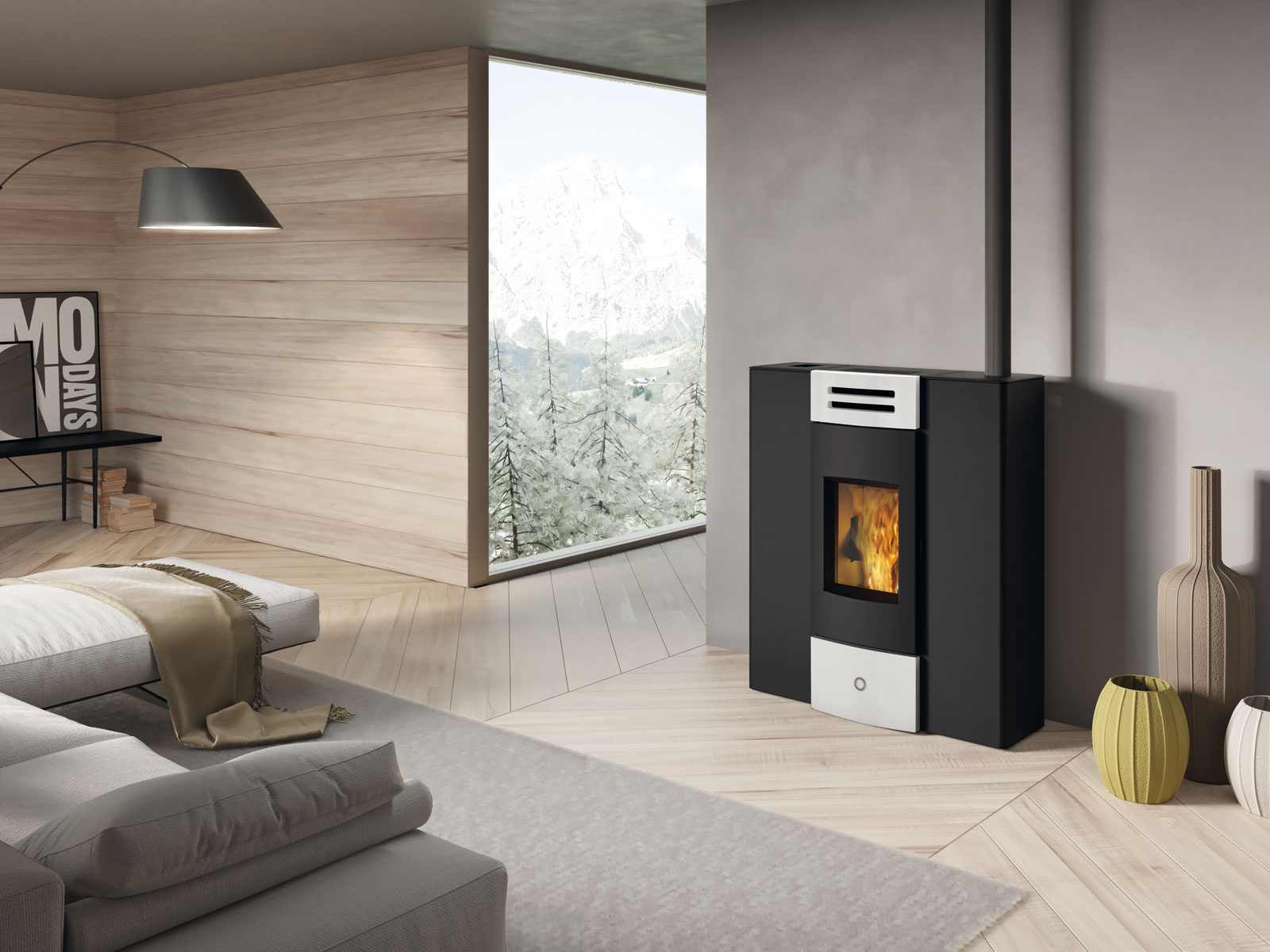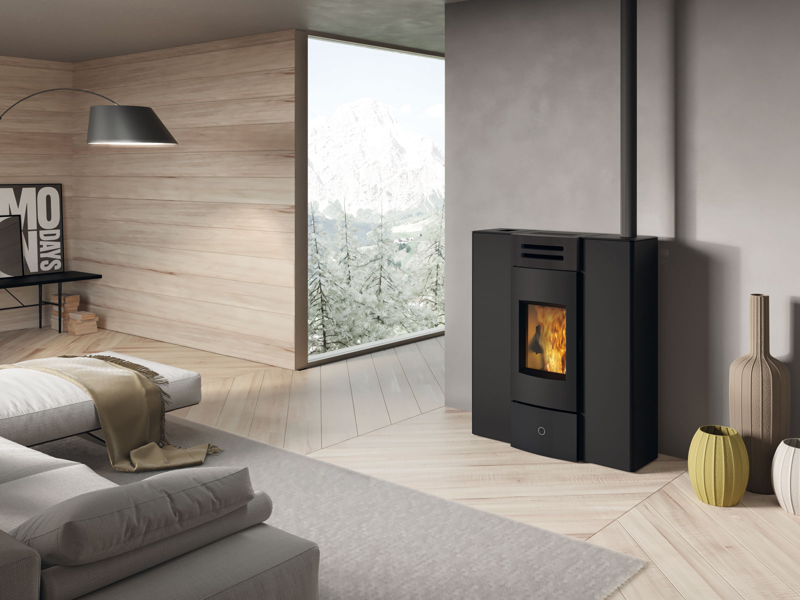 Stufa a pellet stagna canalizzabile “salvaspazio” con soli 36 cm di profondità, ideale per il corridoio ma adatta ad ogni ambiente della casa.