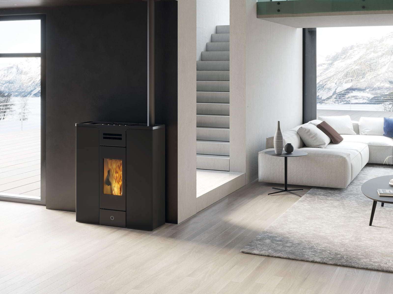 Stufa a pellet stagna canalizzabile “salvaspazio” con soli 31 cm di profondità, ideale per il corridoio ma adatta ad ogni ambiente della casa.