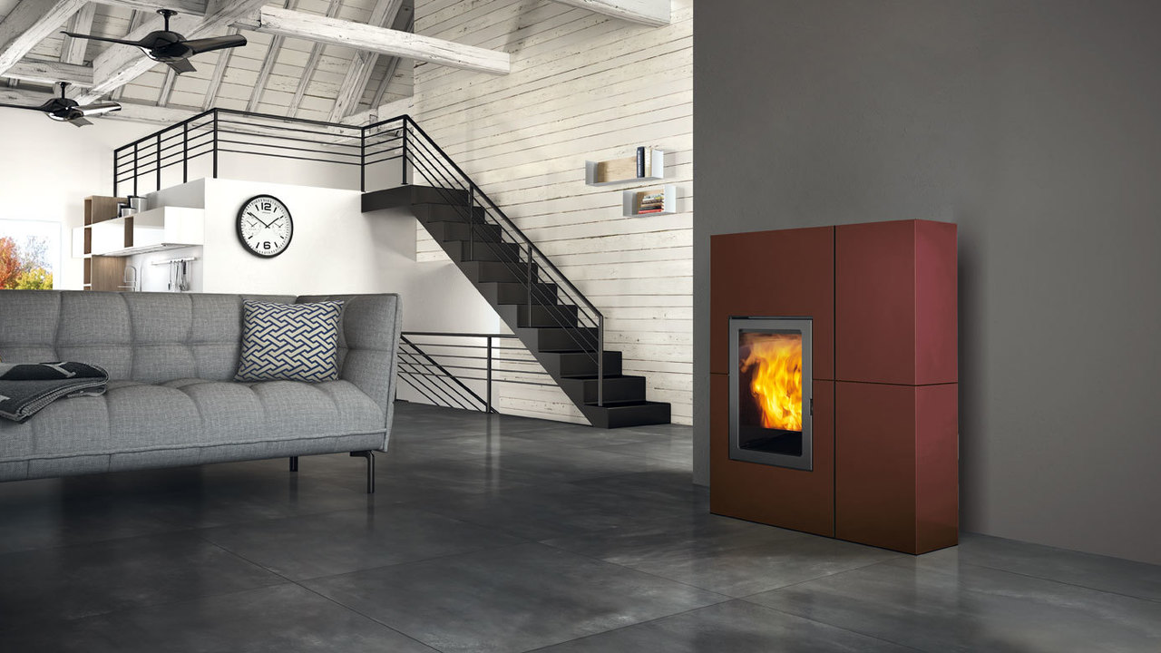 Stufa a pellet canalizzabile con profondità ridotta (cm 34,5).