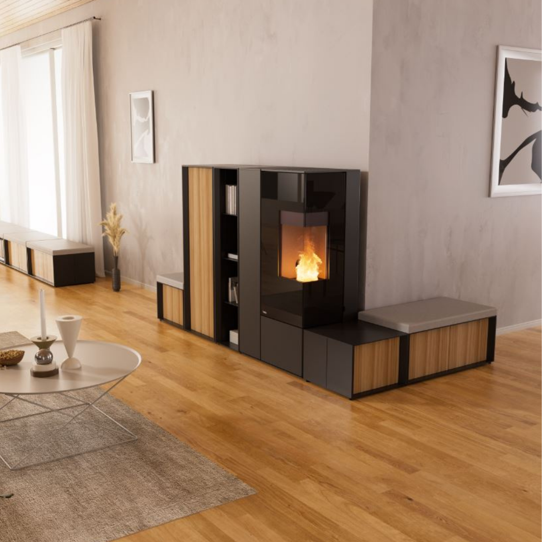 CONNECT PELLET EDGE con vista ad angolo accentua la diversità del sistema CONNECT ed è una specialità assoluta tra le stufe a pellet modulari. La vista ad angolo - a scelta a sinistra o a destra - non apre solo una vista eccezionalmente generosa sul fuoco, ma anche dimensioni completamente nuove dell'arredamento. A parete, come divisorio o come soluzione angolare: con un po' di creatività, CONNECT PELLET EDGE con vista ad angolo, compresi i componenti aggiuntivi e gli accessori variabili, può essere personalizzata con stile e praticità allo stesso tempo.