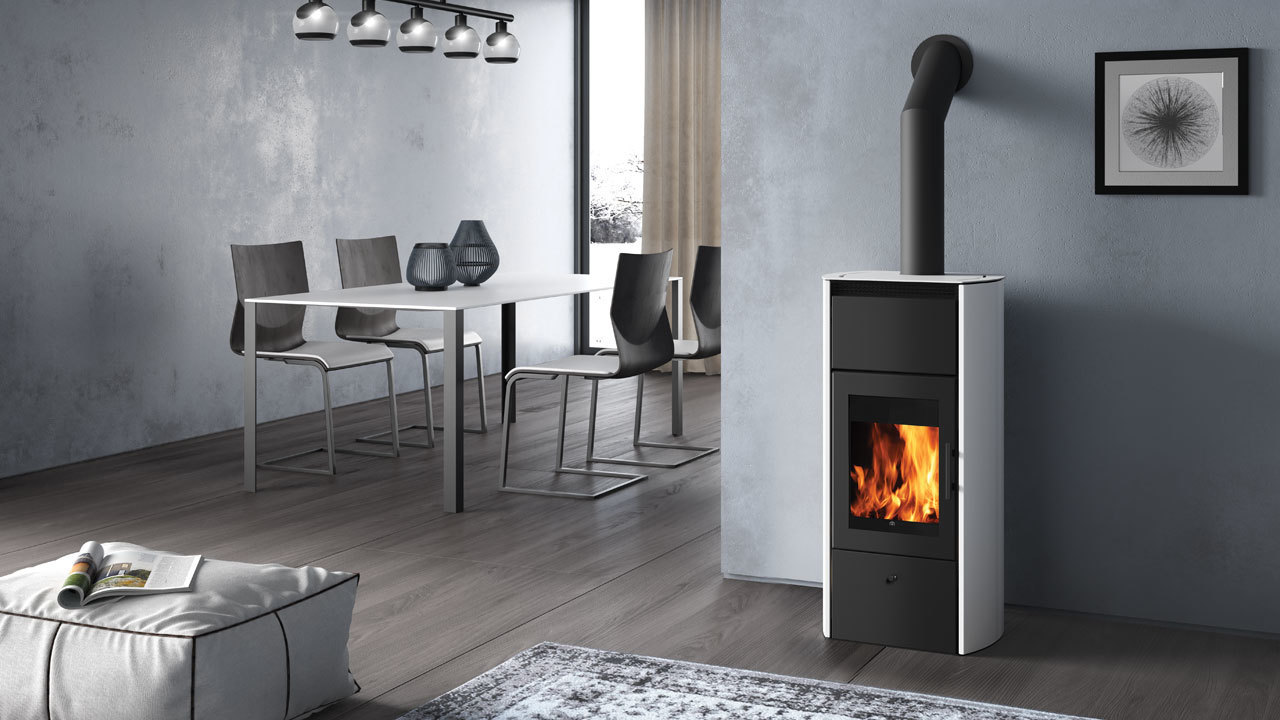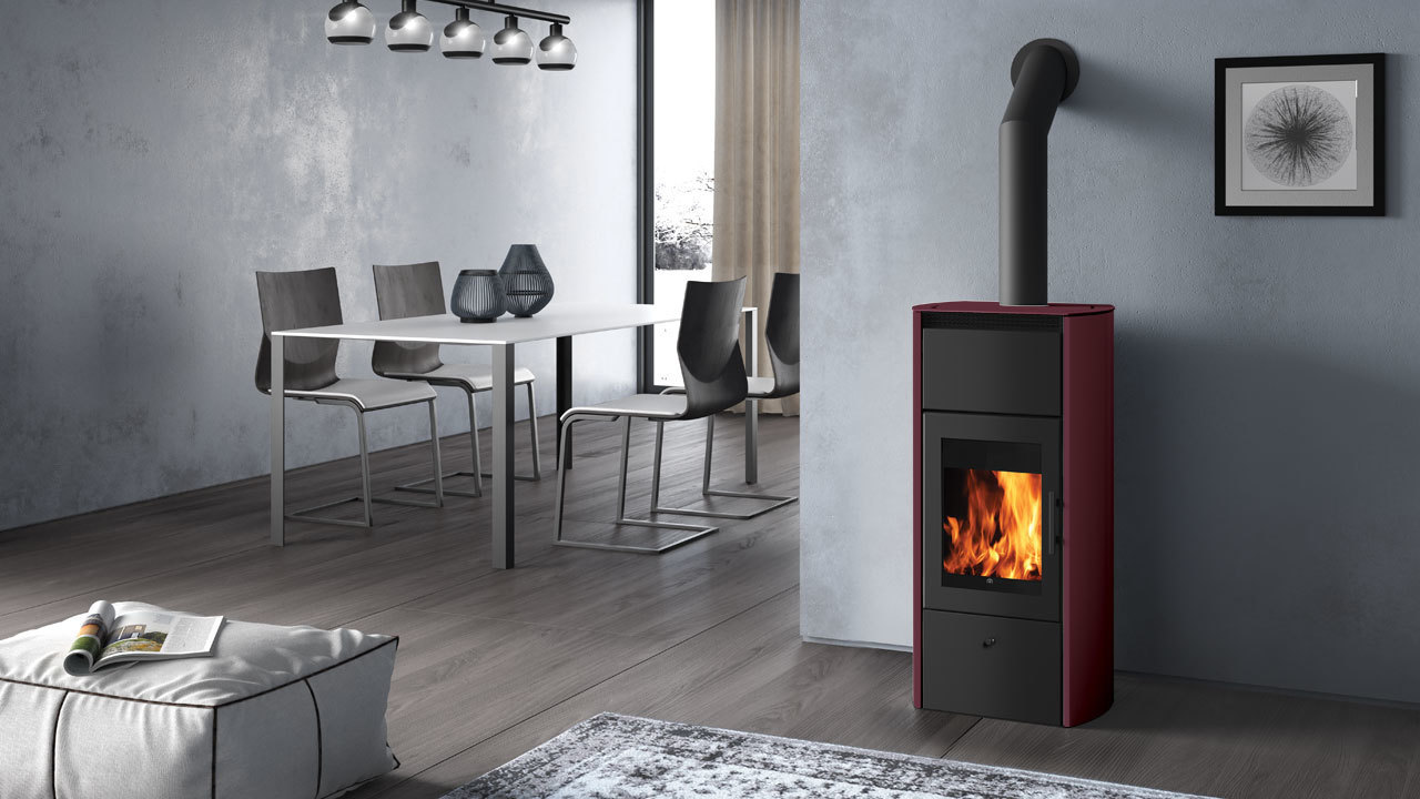 Flamma è la termostufa a legna caratterizzata dall’ampio vetro che esalta la visione della fiamma.