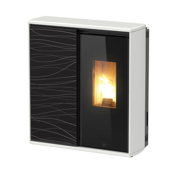 Una stufa combinata compatta funzionante a legna ed a pellet, per il riscaldamento ad aria calda forzata, con la particolarità di due camere di combustione, ma una sola uscita fumi e dal design unico che valorizza la fiamma del combustibile scelto. Un vetro esterno scorrevole decorato o liscio, completa l’effetto scenografico della stufa permettendo di oscurare o dare visione alla fiamma in qualsiasi momento. La rifinitura esterna è disponibile in pietra ollare sabbiata o acciaio in colorazioni bianco o nero. Con il funzionamento a legna puoi scegliere anche il funzionamento solo per irraggiamento.